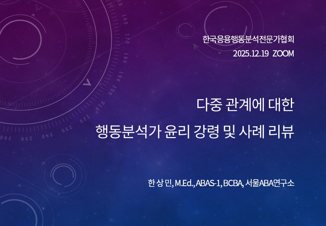배정 CEU : ABAS, BACB, QABA 2.0 (Ethics) 1. 이 강좌는 지난 2025년 12월 19일 온라인으로 진행된 KACBA CEU event 강의의 녹화분입니다. 2. 이 카테고 [...]